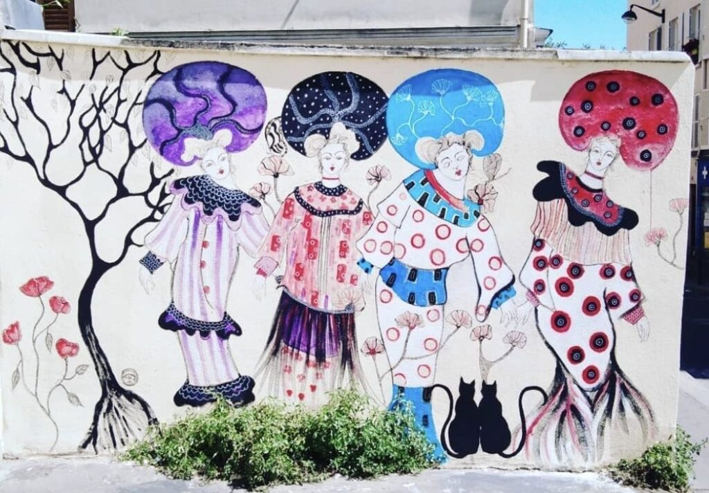 Depuis le printemps 2019, les élégantes silhouettes féminines de Demoiselle MM fleurissent sur les murs de Paris. D’abord timides, cantonnées aux frontières du 20e et du 19e où l’artiste a son atelier, ses demoiselles s’aventurent désormais à travers la capitale pour mieux porter leur message de liberté et d’émancipation.